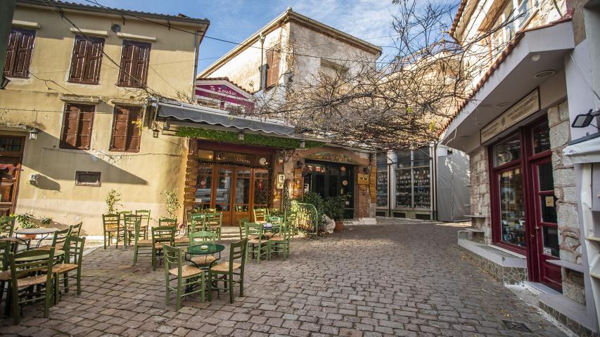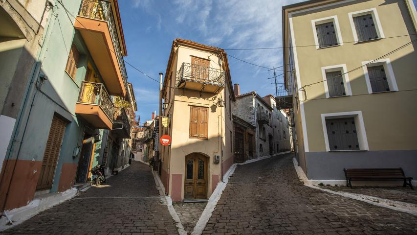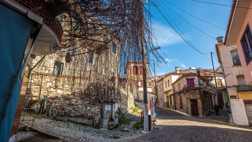 Agiasos is a large settlement, amphitheatrically built on the slopes of Mount Olympus, and a genuine traditional village of Lesvos with beautiful stone houses with red-tiled roofs and wooden balconies, the “sachnisia.” Its narrow, cobbled alleys are also characteristic. Although not coastal, it receives many visitors in summer thanks to the church of Panagia of Agiasos, which celebrates on 15 August, when a large festival is held. The monastery was built to house the icon brought by the monk Agathon from Jerusalem in 803 BC. From the inscription on the icon, “METER THEOU HAGIA SION,” comes the name Agiasos, from the paraphrase “Agiasón,” later “Agiasos.” Finally, it is surrounded by rich natural environment with a variety of trees and a vast chestnut forest, and its flora includes rare anemones, cyclamens, peonies and wild orchids.