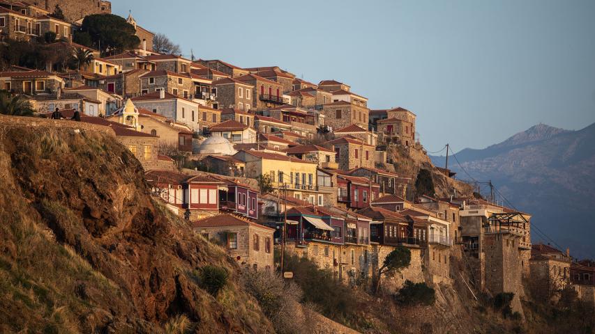 Mythimna is built at the island’s northwestern tip, 62 km from Mytilene. It is considered one of the island’s oldest settlements. Its name comes from the daughter of King Macar, the island’s first settler in mythology. In antiquity it was called Mythimna, while in the late Byzantine period it acquired the name Molyvos. The settlement is amphitheatrically built with the imposing castle crowning the hill. The castle was built by the Byzantines in the early 1300s and renovated by Francesco I Gattilusio in 1373. Cobblestone alleys and quaint shops make up the scene, and you will discover imposing mansions with “sachnisia,” a 19th-century architectural feature—wooden balconies resting on the stone walls of traditional buildings. One of Molyvos’ central lanes is known for the blooming “Wisteria,” which forms a natural tunnel. Since 1965, Molyvos has been listed as a protected settlement.