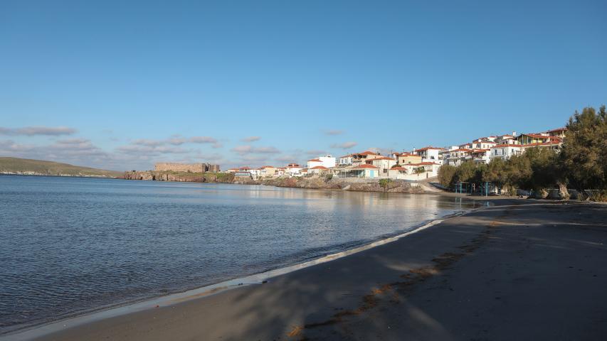 Sigri Beach stretches along the southern edge of the settlement, on the western side of Lesvos. It is a sandy beach with clean, shallow waters, ideal for swimming and relaxation, as it is protected within a natural, enclosed bay. The beach is organized, with showers, changing rooms, a canteen, benches, and sun shelters, while the scattered tamarisk trees along its length offer natural shade and coolness. From the shore, the view of Sigri Castle is particularly impressive, adding a distinctive touch to the landscape. In the wider area, visitors will find hotels, restaurants, and cafés, completing the experience of a tranquil and authentic escape in western Lesvos.