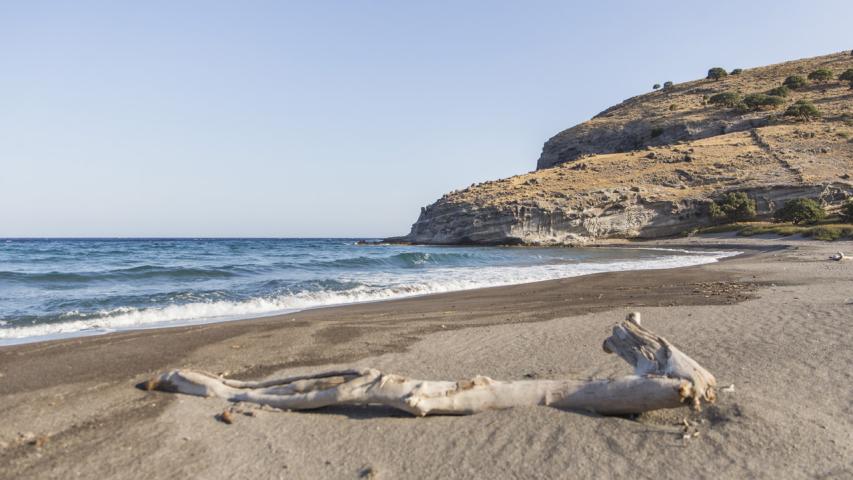 Η παραλία του Αγίου Δημητρίου βρίσκεται στη δυτική πλευρά του νησιού, νότια του Αγίου Αντωνίου. Διαθέτει αμμουδιά με ψιλό, μαύρο ηφαιστειογενές βότσαλο, ενώ υπάρχουν βελανιδιές που προσφέρουν φυσική σκιά στους επισκέπτες. Η πρόσβαση σε αυτήν γίνεται εύκολα με αυτοκίνητο μέσω χωματόδρομου (5 χλμ. από τον οικισμό), μέσω αγροτικού δρόμου (χωματόδρομος). Είναι σχετικά μεγάλη και συγκεντρώνει πλήθος κόσμου. Τέλος, είναι ευάλωτη στους βόρειους ανέμους. Είναι ιδανική για οικογένειες με παιδιά, για κολύμπι με μάσκα και ψαροτούφεκο.