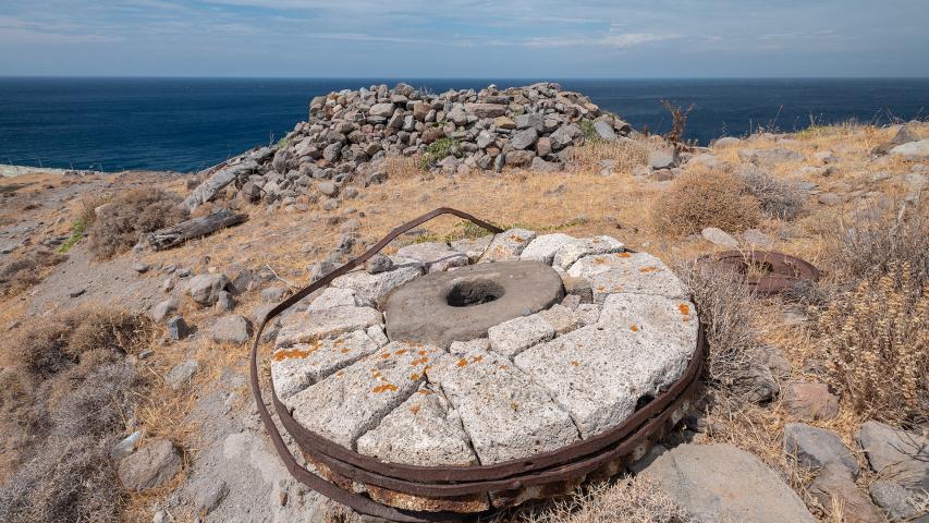 Οι ανεμόμυλοι αποτελούν σημαντικά σημεία ενδιαφέροντος της αγροτικής κληρονομιάς, ιδιαίτερα όταν δεσπόζουν σε σημεία-ορόσημα, όπως η κορυφή του λόφου στον οικισμό του Αγίου Ευστρατίου. Οι περισσότεροι βρίσκονταν στο ύψωμα πάνω από τον παλαιό οικισμό, δίπλα στα πέτρινα σπίτια που είχαν ανεγερθεί με βάση την αιγαιακή αρχιτεκτονική. Ήταν κυλινδρικές πέτρινες κατασκευές με κωνική στέγη και ψάθινο κάλυμμα πάνω από τσίγκο. Τα μεγάλα τριγωνικά πανιά, στερεωμένα σε αντένες, κινούσαν ένα ξύλινο σύστημα αξόνων και τροχών που μετέφεραν την αιολική δύναμη στη μυλόπετρα. Εκεί, τα δημητριακά συνθλίβονταν ανάμεσα στις πέτρες και παραγόταν το αλεύρι. Μετά το 1950, η χρήση τους μειώθηκε λόγω της διάδοσης πιο σύγχρονων μύλων, ενώ ο σεισμός του 1968 προκάλεσε την ολοκληρωτική καταστροφή τους. Σήμερα, σώζονται μόνο λίγα ερείπια, σιωπηλοί μάρτυρες της αγροτικής παράδοσης του νησιού.