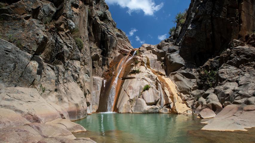 Στη δυτική χερσόνησο της Λέσβου, ανάμεσα από τους οικισμούς Πτερούντας και Χιδήρων, βρίσκεται ο μικρός αλλά ιδιαίτερης φυσικής ομορφιάς, καταρράκτης Βαθύλιμνος. Τα νερά του πηγάζουν από τον ορεινό όγκο του Προφήτη Ηλία στις πλαγιές του οποίου υπάρχει το μοναδικό δάσος Μαύρης Πεύκης του νησιού. Ακόμη, ανάμεσα στο δάσος, ευδοκιμούν παρόχθιες φυτοκοινωνίες με ροδόδεντρο, παιώνια και η μεγάλη φτέρη με την ονομασία «Οσμούντα η βασιλική». Ο καταρράκτης Βαθύλιμνος δημιουργήθηκε κατά μήκος ενός ρήγματος, ανάμεσα σε λάβες, ηλικίας 16,5 με 21,5 εκατομμυρίων ετών.