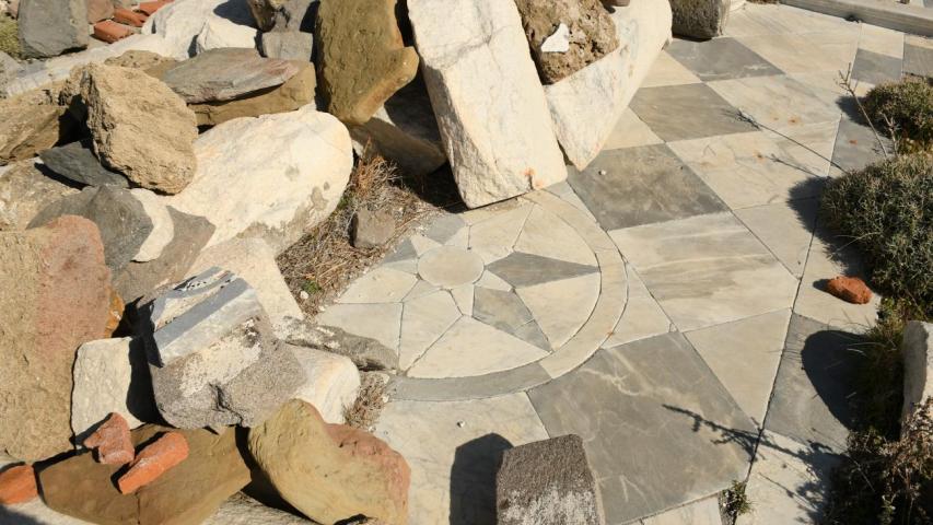 Beş Şehitlere adanmış ve 1633’te inşa edilen Ágioi Péntē Mártyres Kilisesi, Ágios Efstrátios’taki en eski ibadethanedir. MS 3. yüzyılda şehit olan Eustrátios, Auxéntios, Mardários, Evghénios ve Oréstēs’e adanmıştır. Yapımında antik bir Yunan tapınağından devşirme mermer sütunlar ve Korint başlıklar kullanılmış; içi değerli fresklerle bezenmişti. Eski yerleşimin kalesinin batı ucunda, dik bir uçurumun kenarındadır; bugün harabeler korunur. Tek mekânlıdır (11 x 8 m); bir zamanlar üç nefe ayrıldığını gösteren sütun kaideleri vardır. Opus sectile tekniğiyle işlenmiş mermer döşemesi, ortasında yıldızımsı yedigen olan geometrik motifler oluştururdu. Mermer Kutsal Masa, bir Korint başlık üzerinde yükselir; güney duvarda fresk izleri seçilir. Alanda mermer elemanlar, anıtın tarihî değerinin kanıtları olarak durmaktadır.